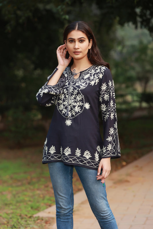 Buttons Up Heavy Embroidered Tunic