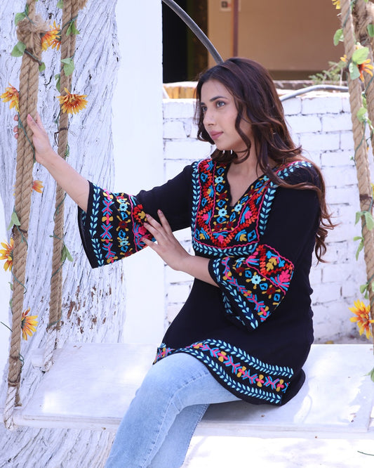 MIRANDA PEASANT TOP BLACK