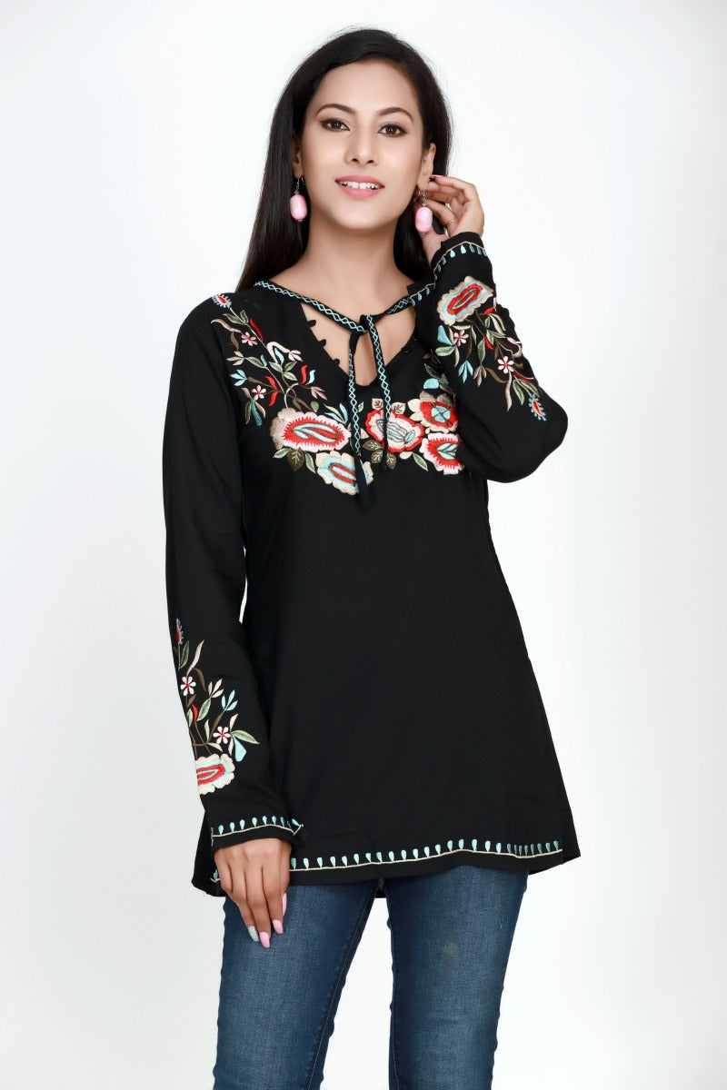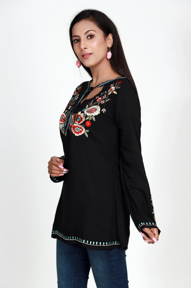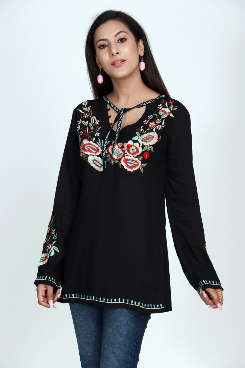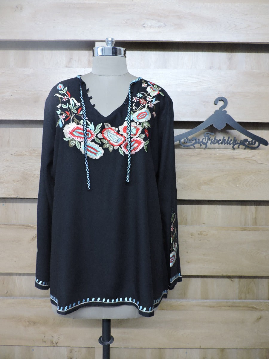 Ultra-chic and effortlessly breezy, our Fun With You Tunic combines a relaxed fit with cloud-soft fabrication. Playful floral patterns and whimsical details throughout make this piece truly special. Pair with simple denim or shorts for a laid-back boho look or dress it up with tapered trousers for a sophisticated night out.LENGTH 31''