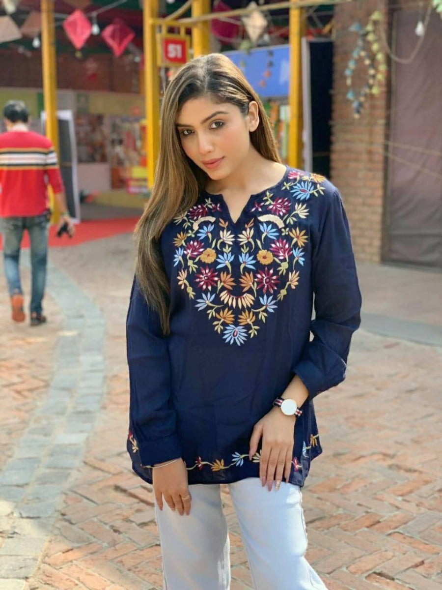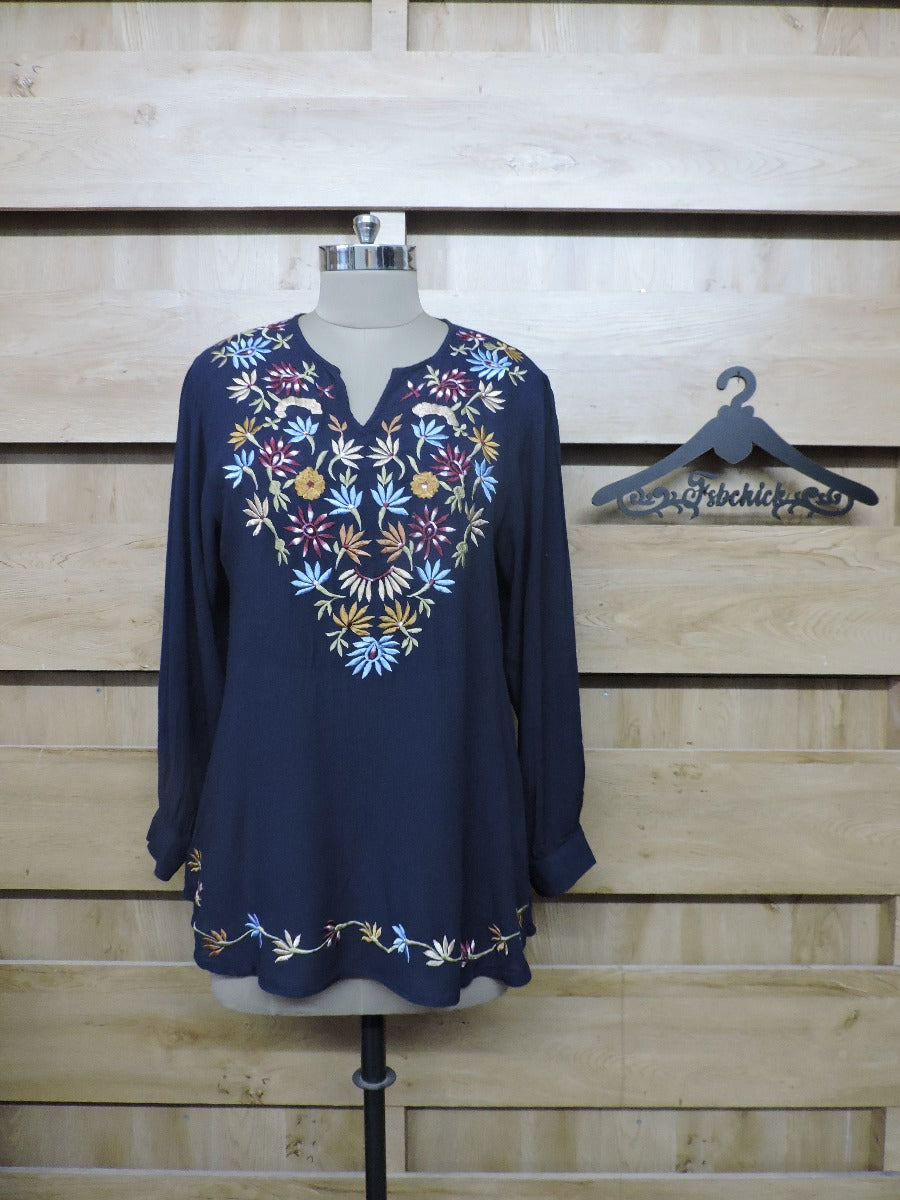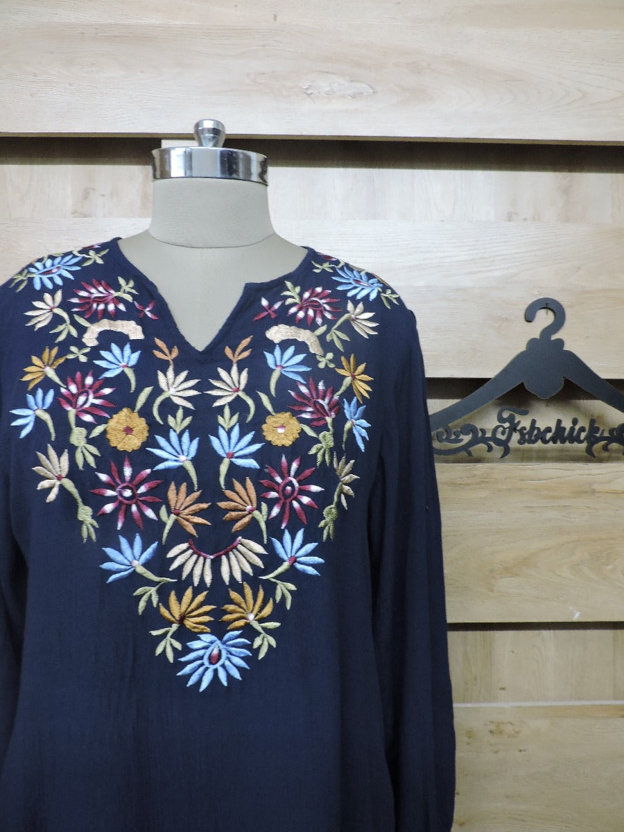 With its trendy embroidered v-neck design, relaxed fit, and vibrant pops of fresh florals, our breezy full sleeves and a cuff peasant blouse can effortlessly elevate any outfit. Pair with simple white denim and a leather tote for a timeless boho look. Add your favorite gold or silver jewelry and a silk scarf to complete the ensemble