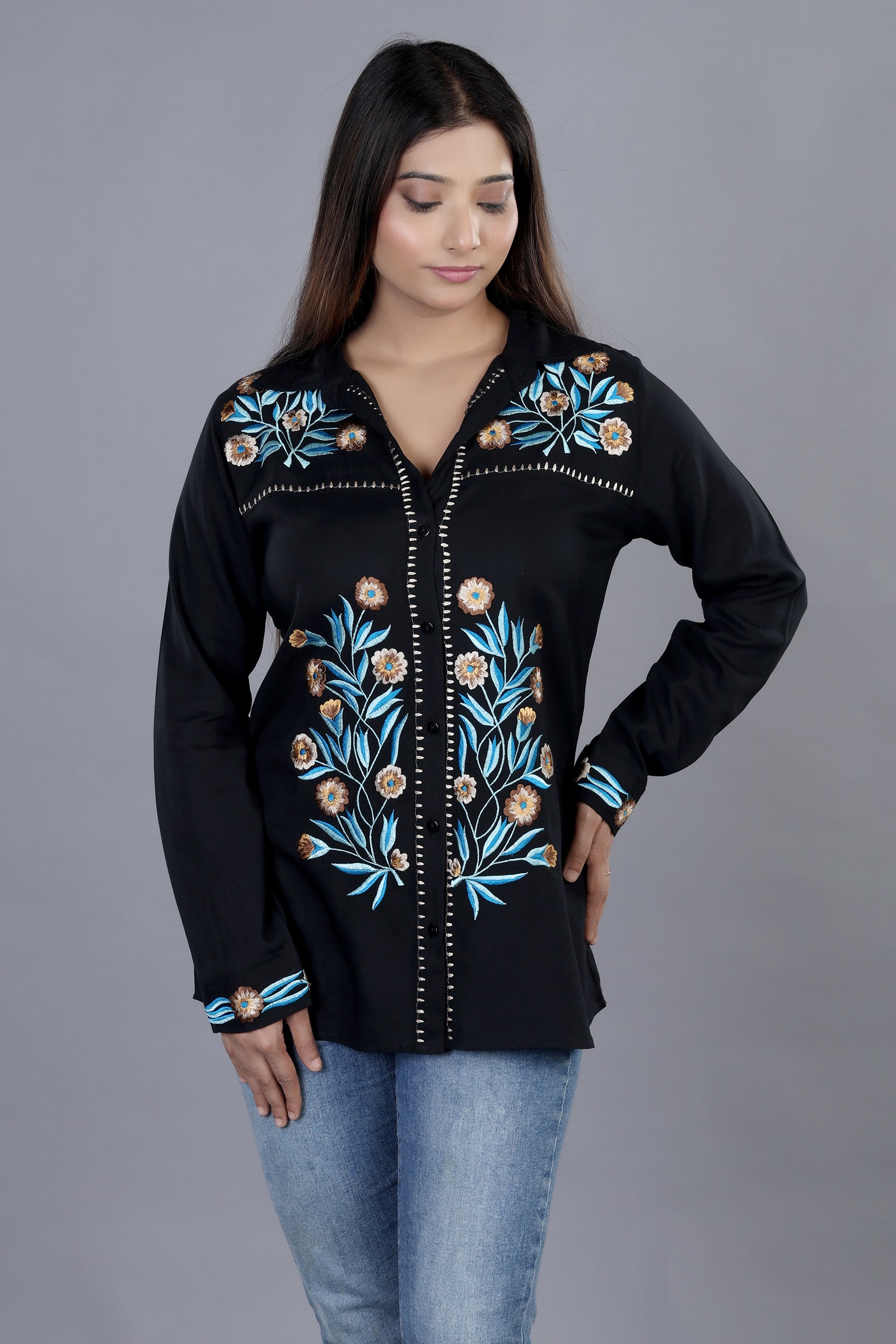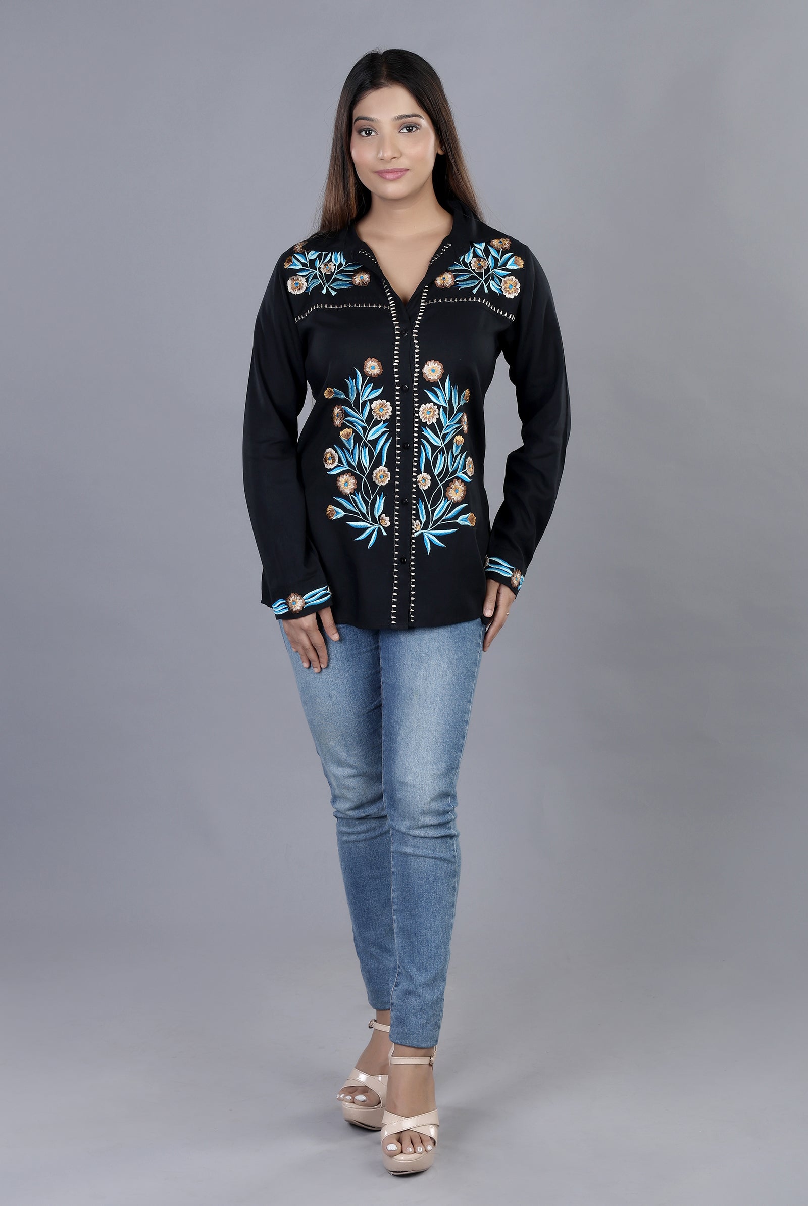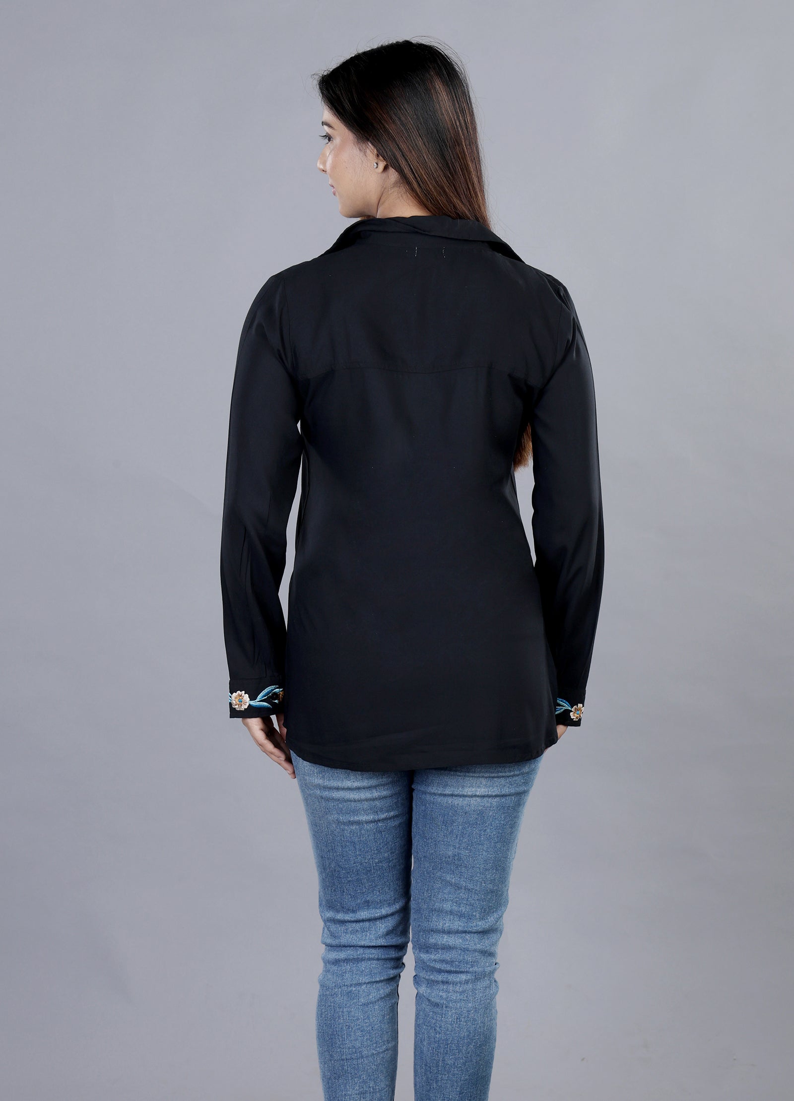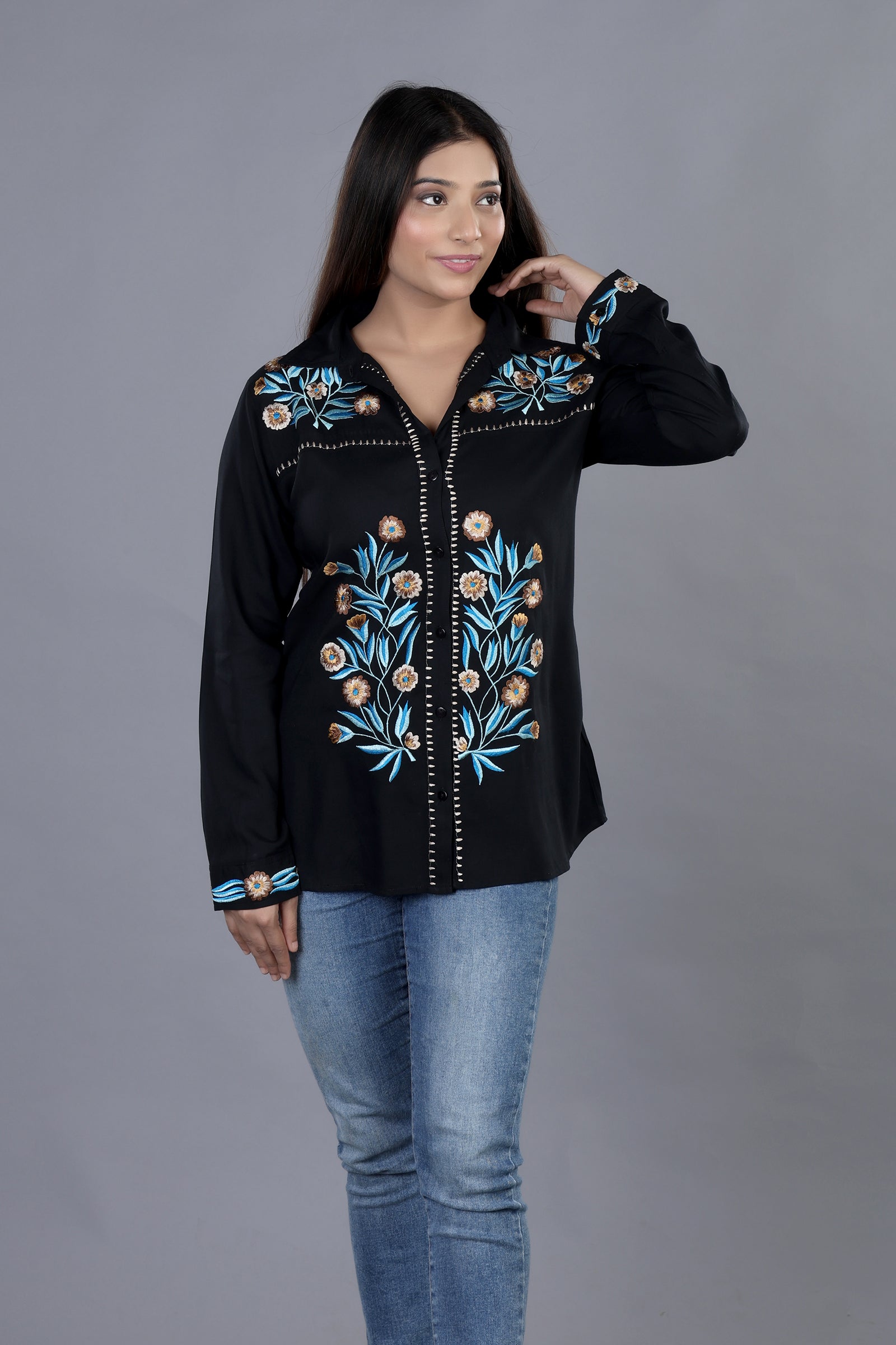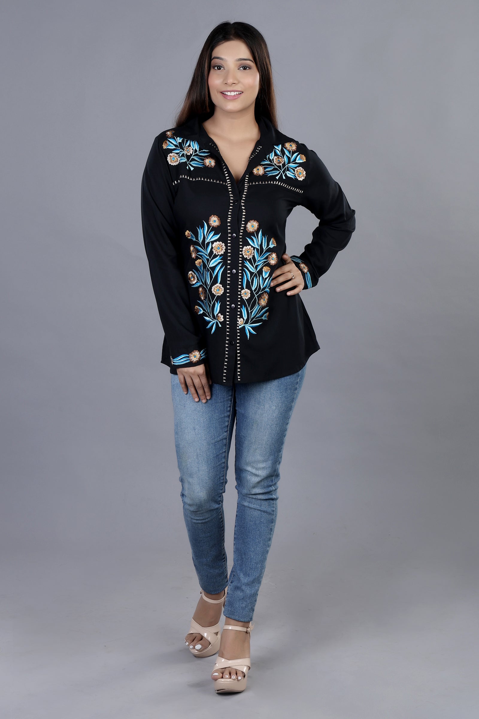 • Multihued Thread Embroidered Black Fusion Shirt- Finding a shirt with some floral thread embroidery on it is like finding joy in solace. It looks exceptionally beautiful and is perfect for both formal and informal wear. Even if you have a meeting to attend or a romantic date to go on, the shirt looks amazing.